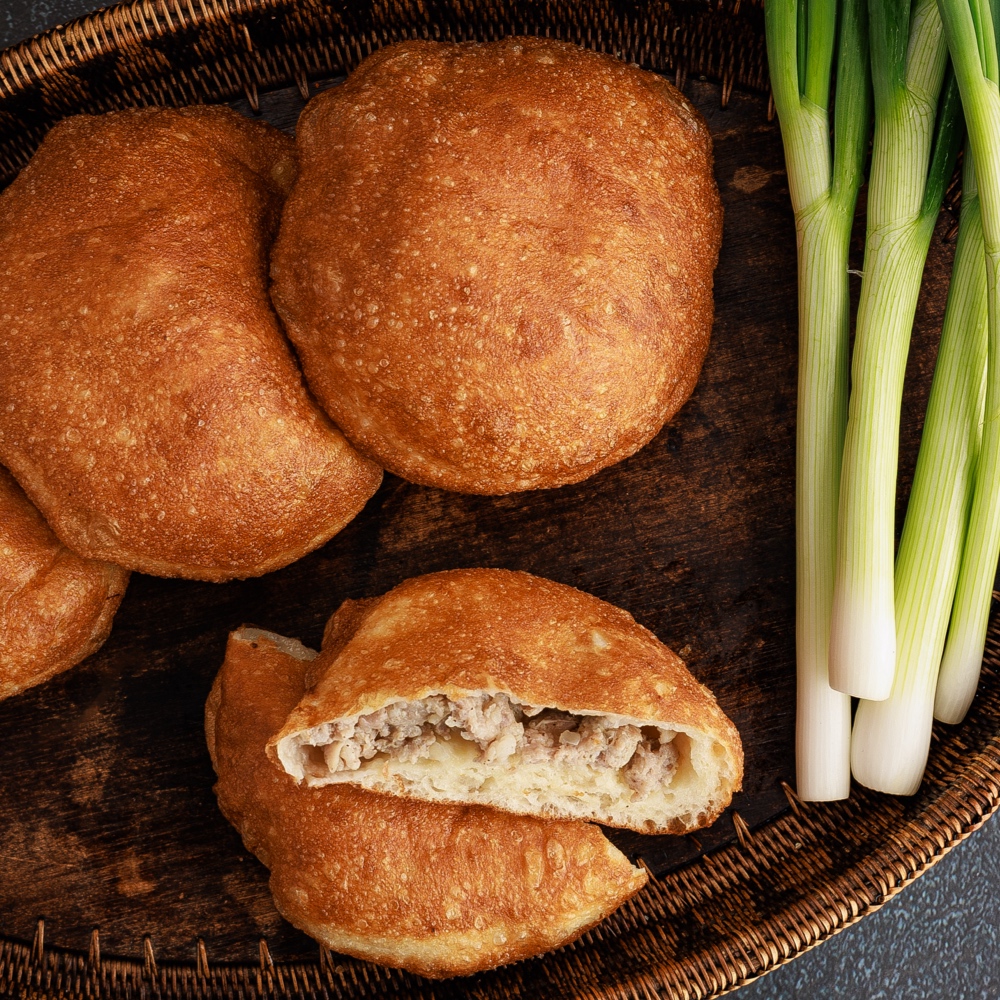 In lockerem Hefeteig befindet sich im Inneren eine saftige Füllung aus Schweinefleisch und Zwiebeln. Belaschi werden von uns in feinem Rapsöl gebraten und können somit in wenigen Minuten serviert und verzehrt werden. Ein idealer und deftiger Snack für Unterwegs.