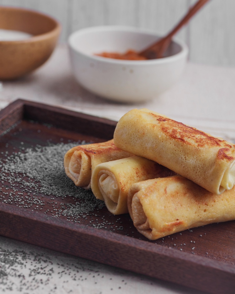 In der Pfanne: Pfannkuchen im Kühlschrank ca. 1–2 Stunden auftauen lassen. Etwas Öl in einer Pfanne erhitzen und die Pfannkuchen bei mittlerer Hitze von beiden Seiten ca. 3–4 Minuten goldbraun braten.