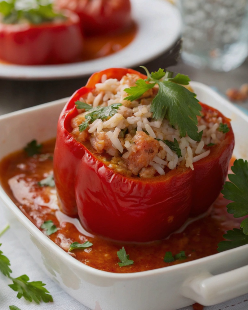 Unsere gefüllten Paprika mit Hähnchenfleisch und Reis sind die ideale Wahl für ein schnelles Mittag- oder Abendessen. Eine einfache Lösung für Tage, an denen es nahrhaft und lecker zugleich sein soll.